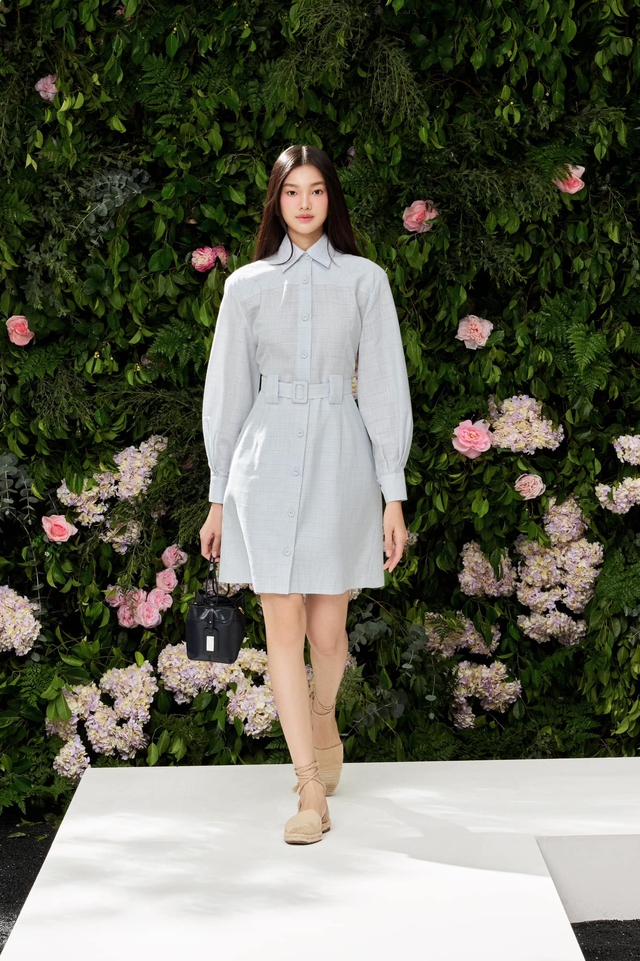 Chiếc váy được thiết kế với form dáng suông nhẹ, giúp tạo cảm giác thoải mái khi mặc. Phần cổ bẻ kết hợp hàng nút phía trước tạo điểm nhấn tinh tế, phù hợp với môi trường công sở hoặc các dịp cần sự nghiêm túc.